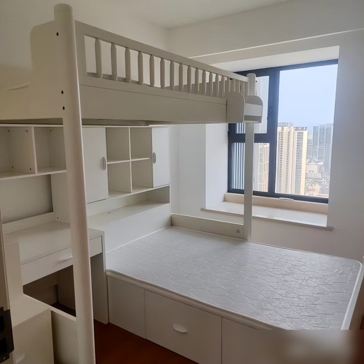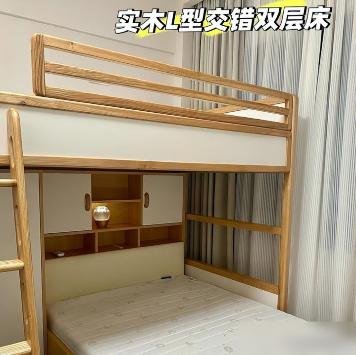之前我总觉得“上下铺就是宿舍风”,结果闺蜜家的错位床用了浅胡桃色实木,搭配墙上的卡通星空贴,压根没有“集体宿舍”的感觉,反而像个藏着秘密的小城堡。老婆看了我拍的视频,直接说“明天就把咱家床卖了换这个”——可不是嘛,对比之下,双人床简直是“空间杀手”:占着10平房间的三分之一,除了睡觉啥用没有,连娃的玩具都没地方放,哪有错位床“一床多用”香?