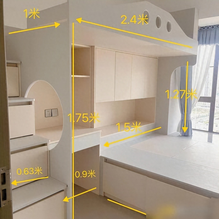 我站在房间里转了个圈,居然没觉得挤,反而比我家放双人床的房间还宽敞!